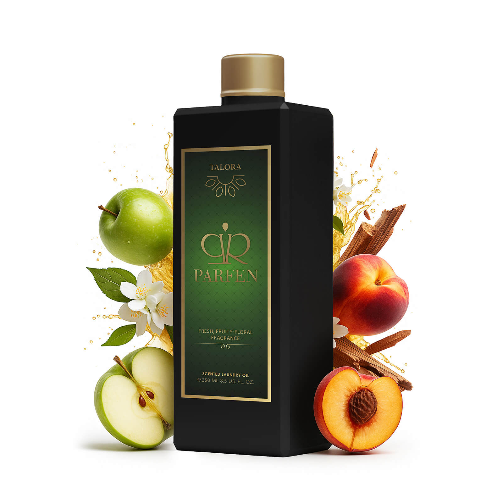 Hledáte alternativu ke klasické aviváži? Pokud toužíte po svěžím prádle s nádechem šťavnatého ovoce, parfém do praní TALORA je pro vás ten pravý. Obsahuje šťavnaté tóny broskve a jablka, které v kombinaci s ostatními ingrediencemi vytvářejí dojem procházky rozkvetlým sadem plným pozitivní energie.