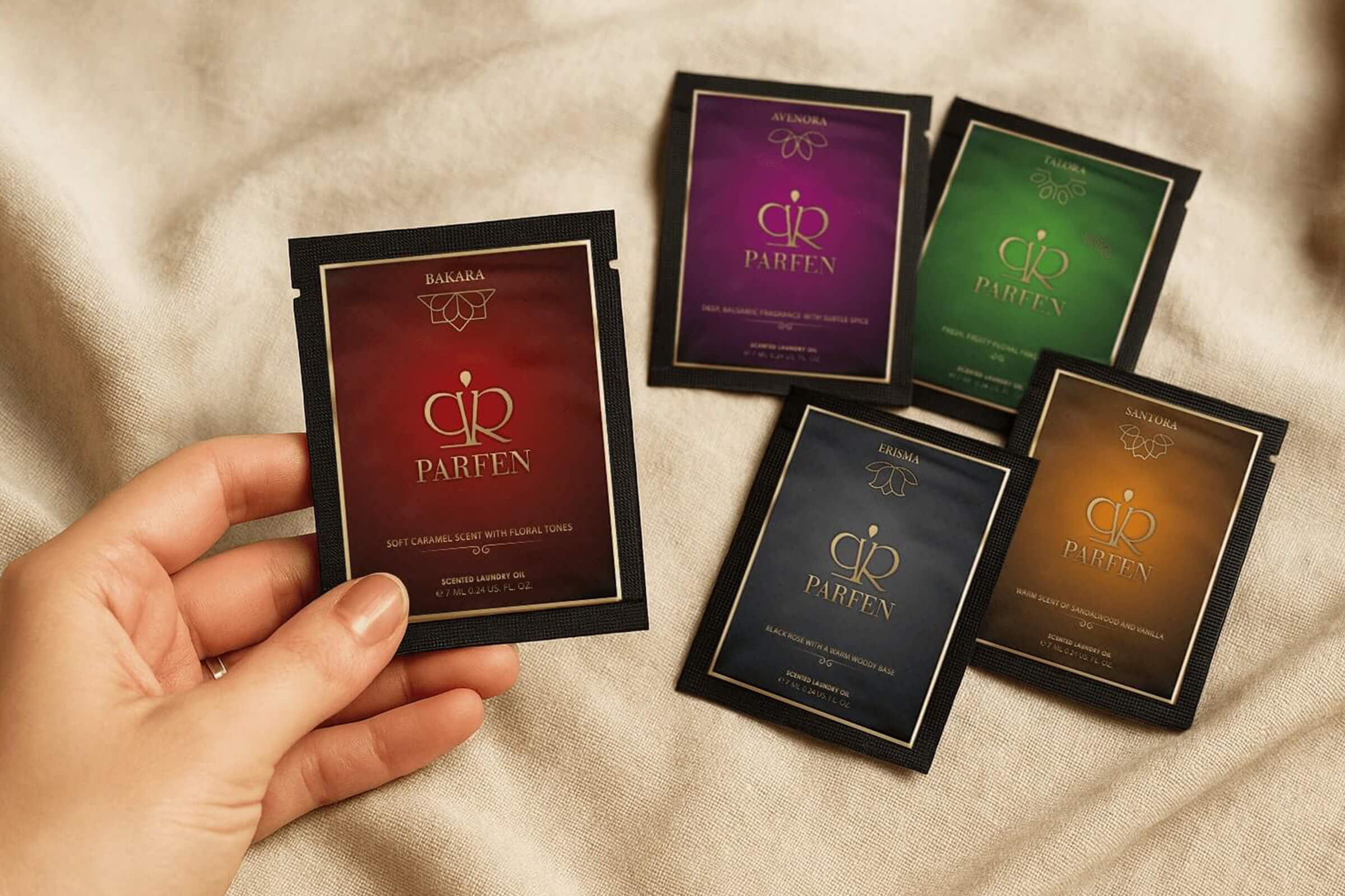 Ještě nikdy jste nezkoušeli parfém do praní? Nebo si neumíte vybrat konkrétní vůni? Vyzkoušejte sadu všech vzorků pracích parfémů Parfen a klasickou aviváž už nikdy nekoupíte. Každý 7ml vzorek je určen na jedno praní, abyste si vůni mohli otestovat a porovnat přímo na oblečení. Sada vzorků ve zvýhodněné ceně obsahuje: